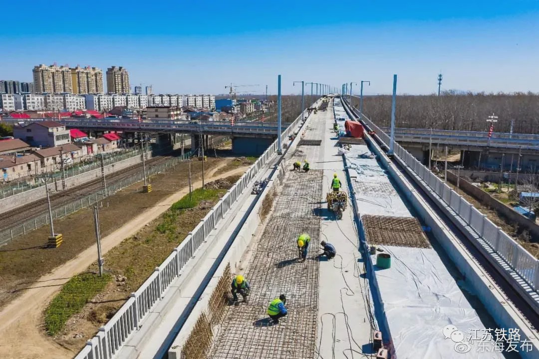 “因為疫情的影響耽誤了工期,我們在復工后,增加了人力、物力,實行兩班倒制度。目前已經在緊追工期,確保工期不延后?!瘪R茂凱說,截至目前,連徐高鐵連云港段征地拆遷、路基和橋梁主體工程已經基本完成,進入了無砟軌道、接觸網施工階段,全體施工人員加班加點確保年內通車。